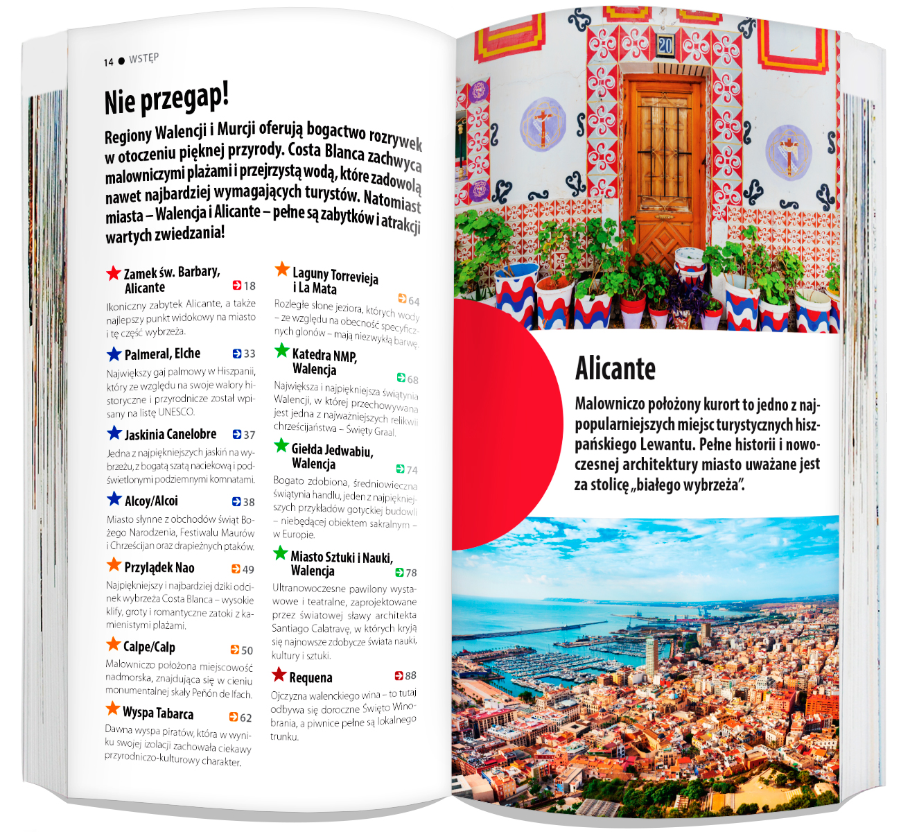 Odkryj regiony Walencji i Murcji z wyjątkową serią przewodników light. To prawdziwy niezbędnik w podróży. Konkretne i zajmujące opisy zarówno głównych atrakcji, jak i mniej znanych, ale wartych uwagi miejsc, układają się w gotowe trasy zwiedzania. Ciekawostki z różnych dziedzin są idealnym dopełnieniem całości. Sprawdzone informacje praktyczne pozwolą zaplanować udany urlop, a szczegółowe i rzetelne mapy pomogą odnaleźć się w każdym miejscu. Do publikacji dołączona jest również dwustronnie laminowana, składana mapa opracowana specjalnie na potrzeby przewodnika. Do wszystkich atrakcji dotrzesz łatwo także dzięki mapie z nawigacją na smartfonie.