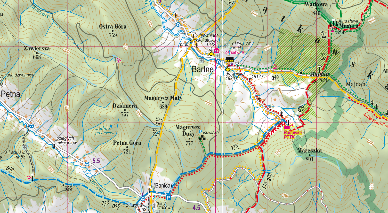 • szlaki piesze i czasy przejść,