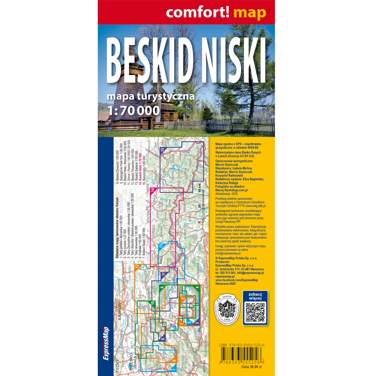 Doliny nieistniejących już wsi, wpisana na listę UNESCO cerkiew św. Paraskewy w Kwiatoniu, renesansowy dwór obronny w Szymbarku, cmentarze z okresu I wojny światowej czy skansen łemkowski w Zyndranowej to tylko niektóre interesujące miejsca w Beskidzie Niskim. Dwustronnie laminowana, wygodna w składaniu mapa turystyczna Beskidu Niskiego pomoże odnaleźć ich znacznie więcej. Publikacja została opracowana we współpracy z doświadczonymi krajoznawcami z regionu.