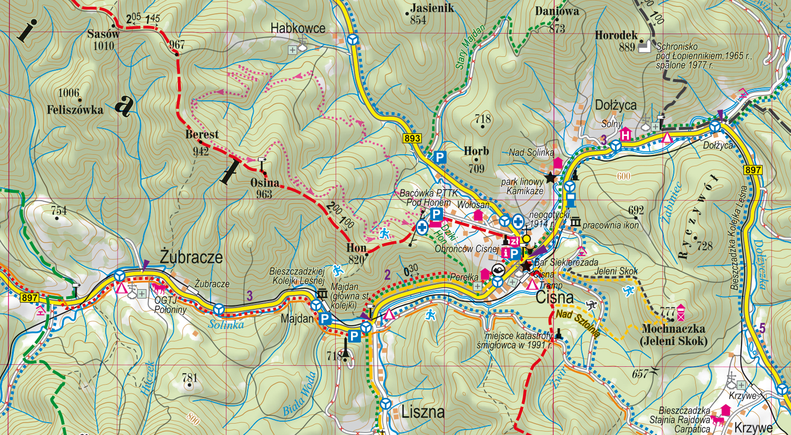 • dogodna dla turysty skala 1:65 000 (1 cm – 650 m),