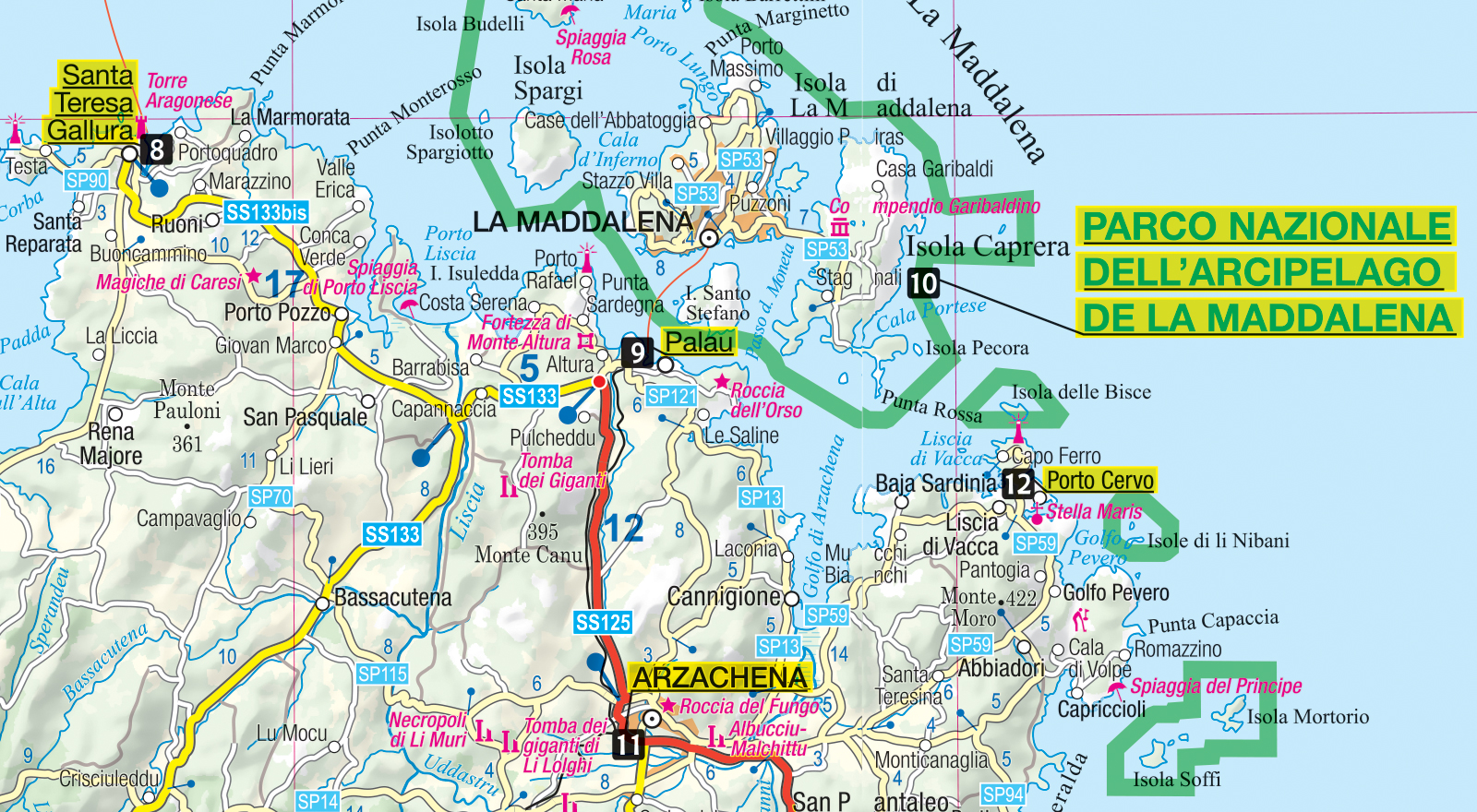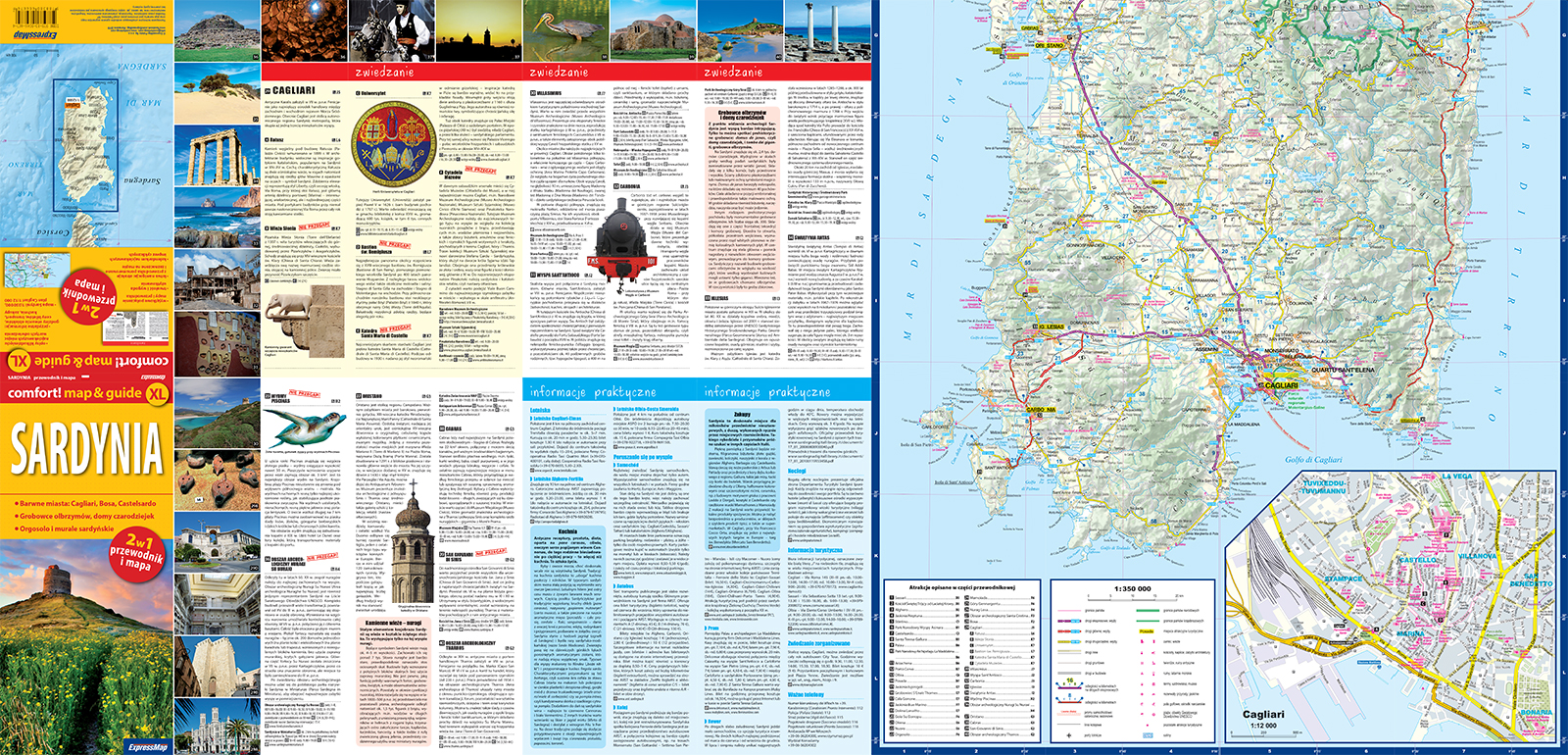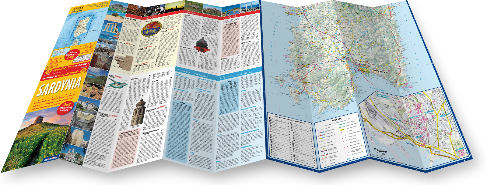 • mapy w dogodnych dla turysty skalach: Sardynia (1:350 000), plan Cagliari (1:12 000),