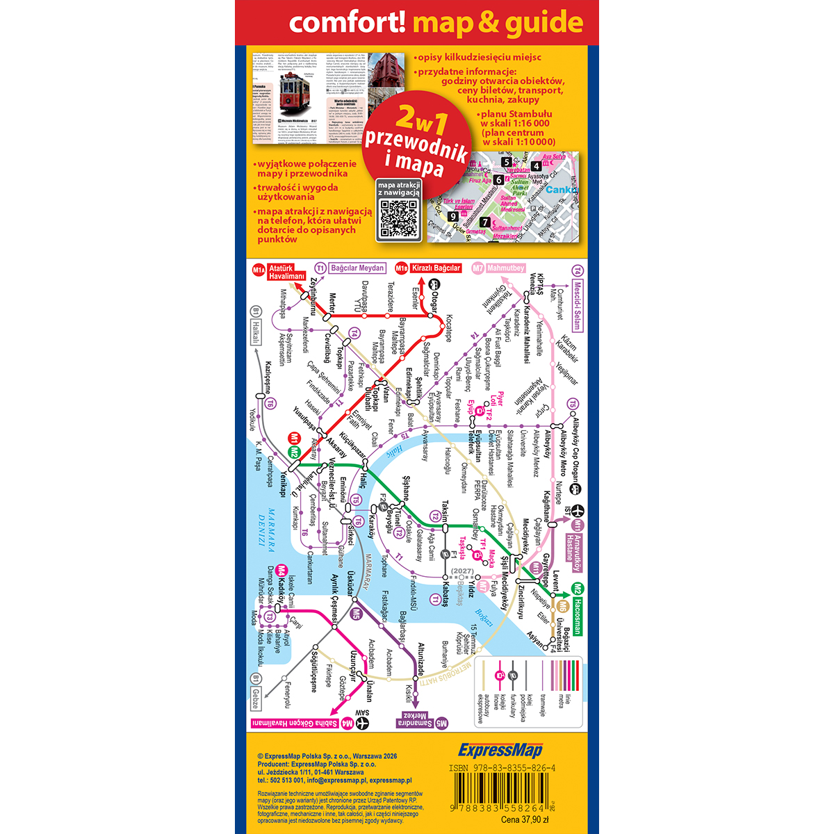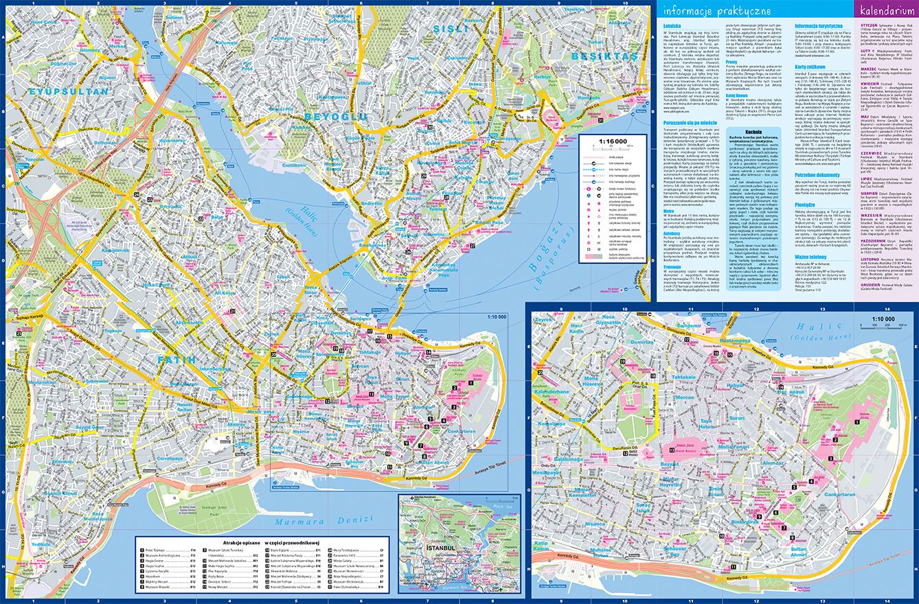 • mapa w użytecznej dla turystów skali 1:16 000, plan centrum w skali 1:10 000,