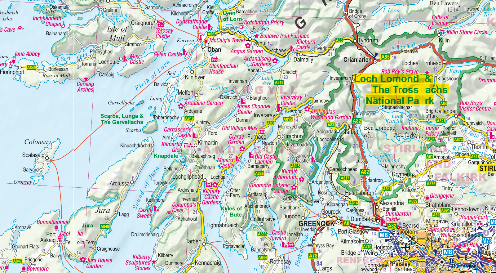Tajemnicze budowle megalityczne w Stonehenge, majestatyczny zamek w Edynburgu, a może malownicze jeziora w parku narodowym Lake District? Dwustronnie laminowana, wygodna w składaniu mapa samochodowo-turystyczna Wielkiej Brytanii i Irlandii pomoże Ci dotrzeć do wszystkich interesujących atrakcji.