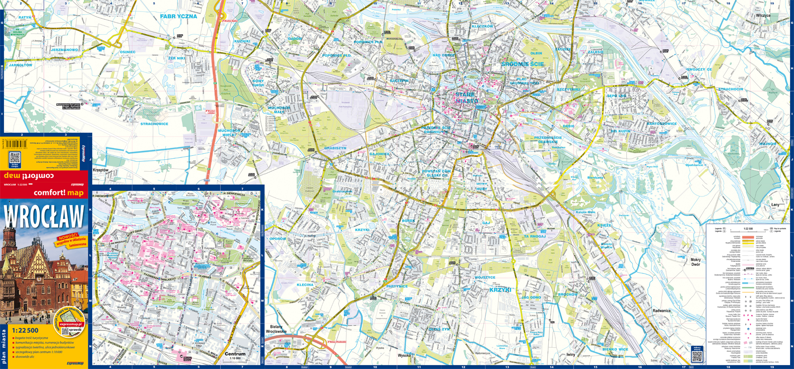Wrocław; laminowany plan miasta 1:22 500